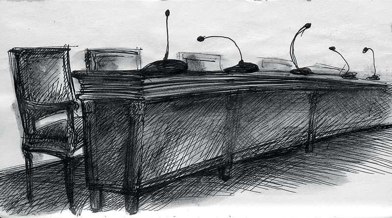Sketches of a meeting at Odessa City Hall