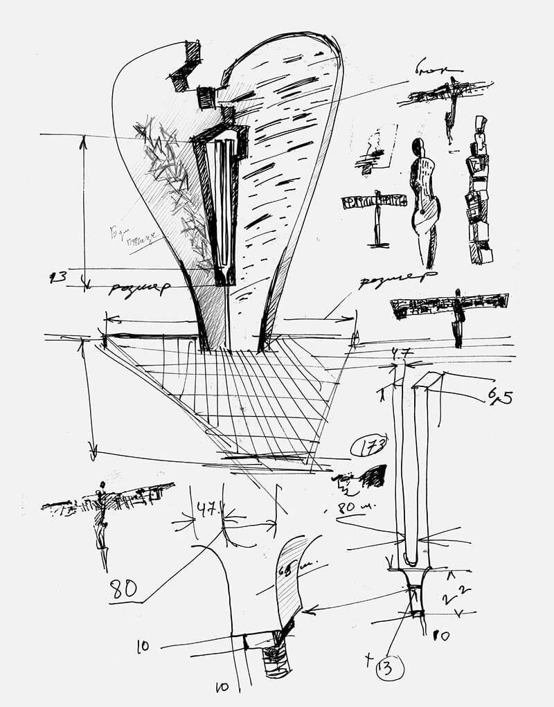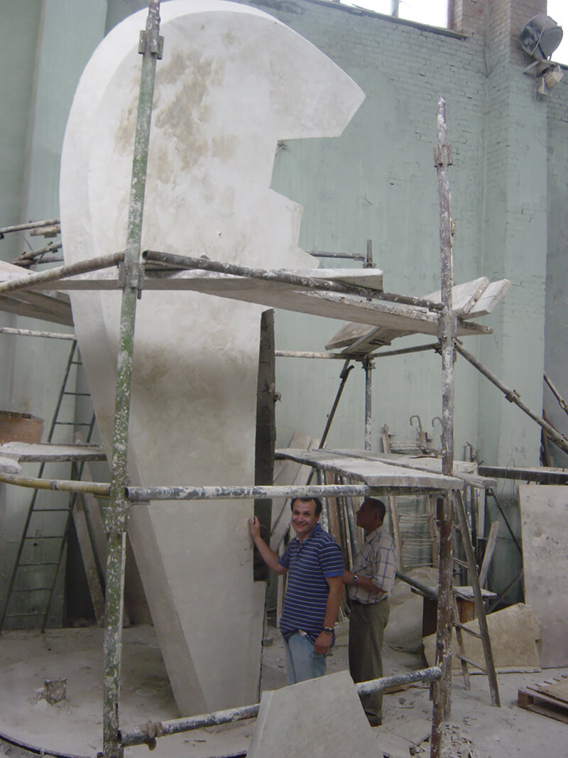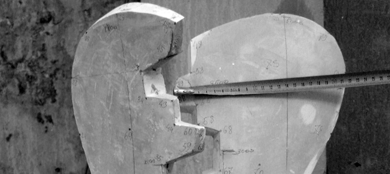 One half took the shape of a deformed aircraft wing (stainless steel).
