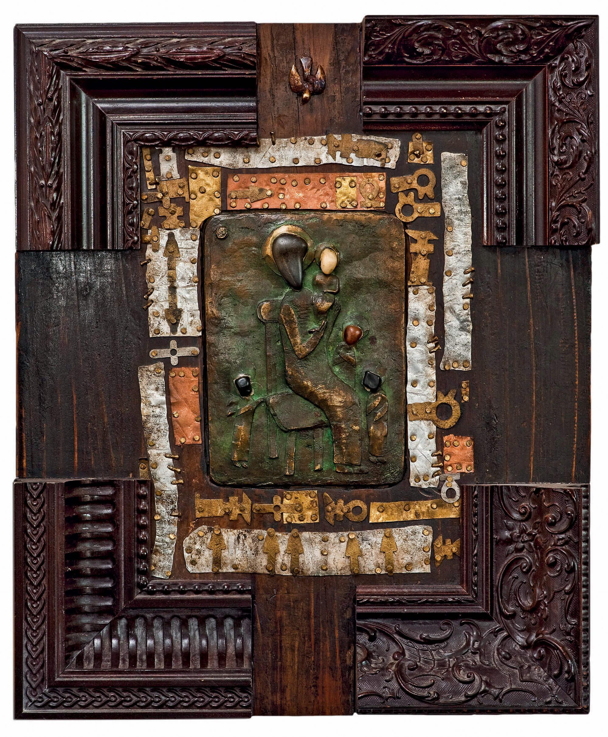 Wood, pebbles, bronze