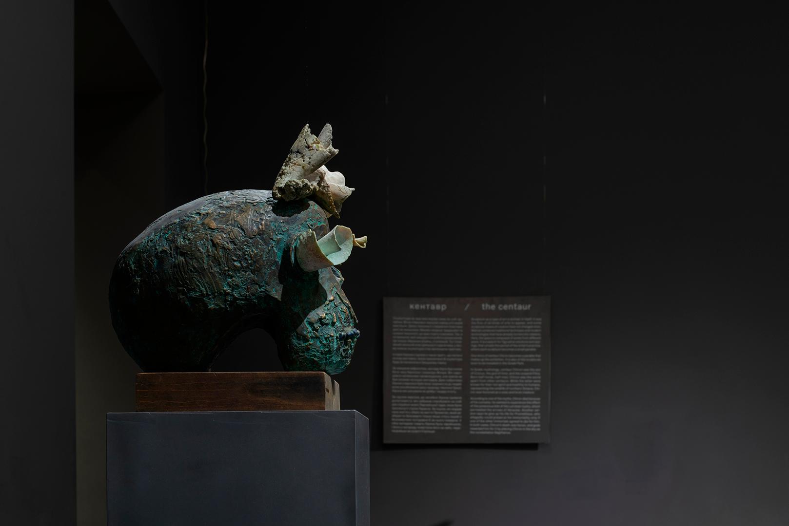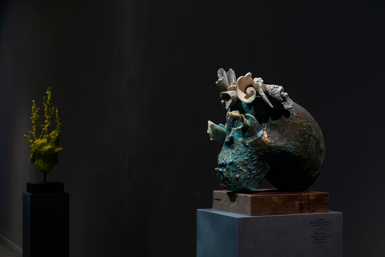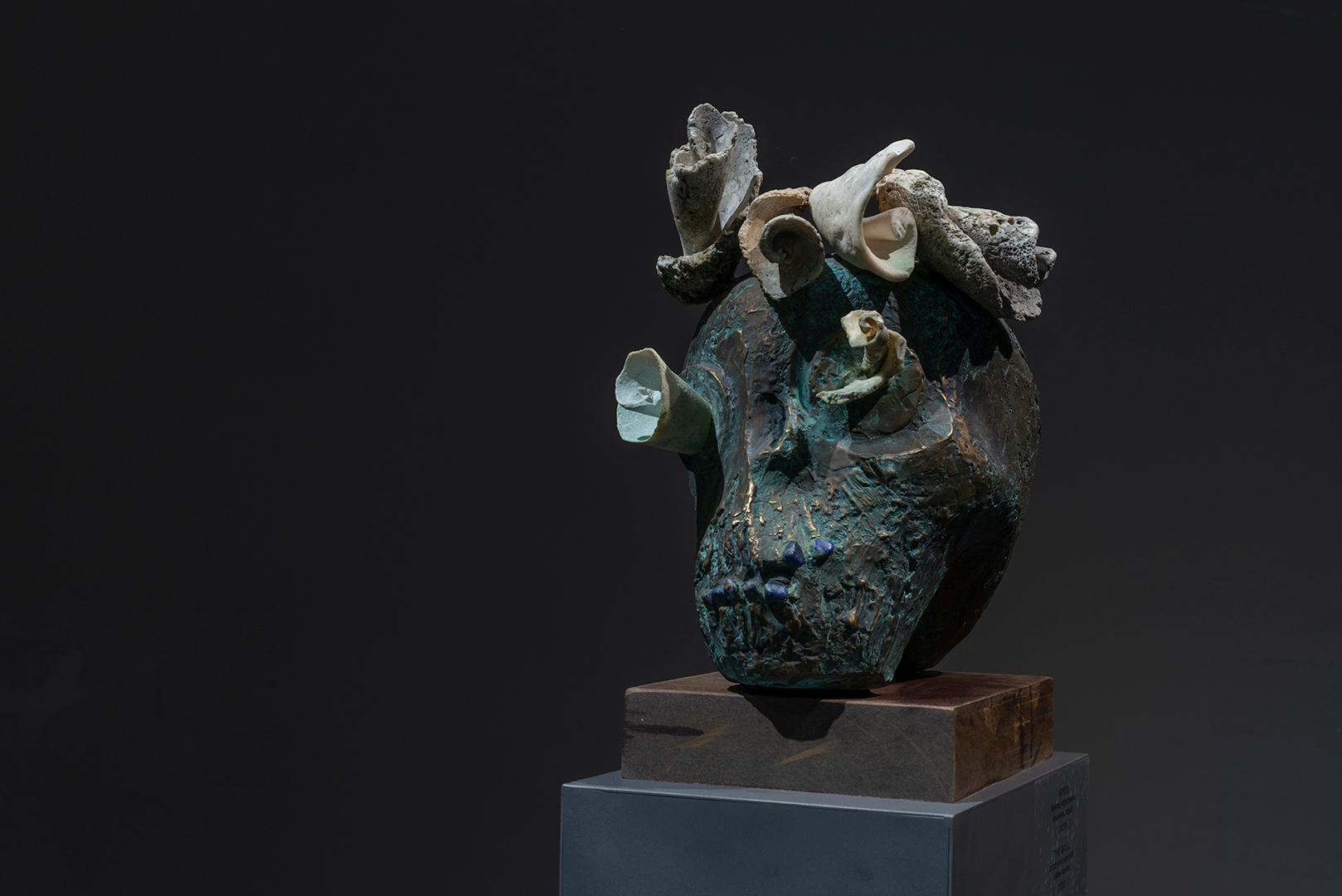 bronze encrusted with shells, lazurite